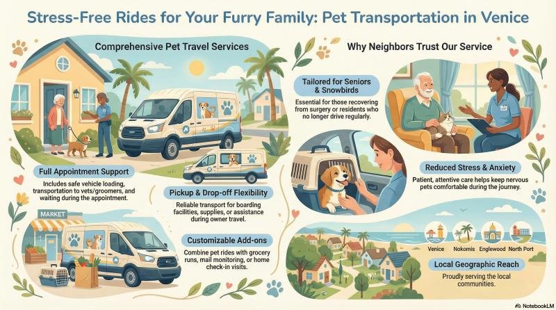 Venice Neighbor Services offers personal and reliable transportation assistance with attention to both client and pet comfort.