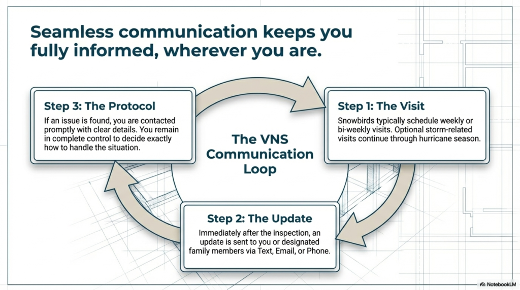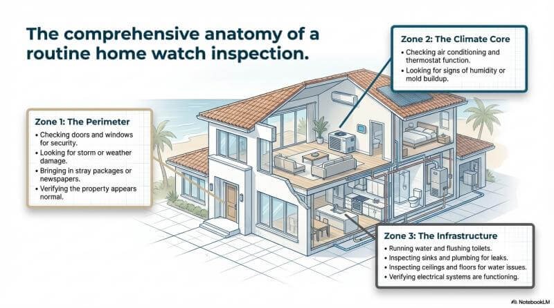 Snowbirds and seasonal homeowners often return to unpleasant surprises. A tripped breaker might mean the refrigerator lost power months ago. A small roof leak could allow gallons of water to pool in the ceiling. Finding a reliable snowbird home watch Venice Florida residents trust is critical for catching these hidden risks early. Regular walk-throughs ensure that the mechanical heartbeat of the house remains strong while you are miles away.